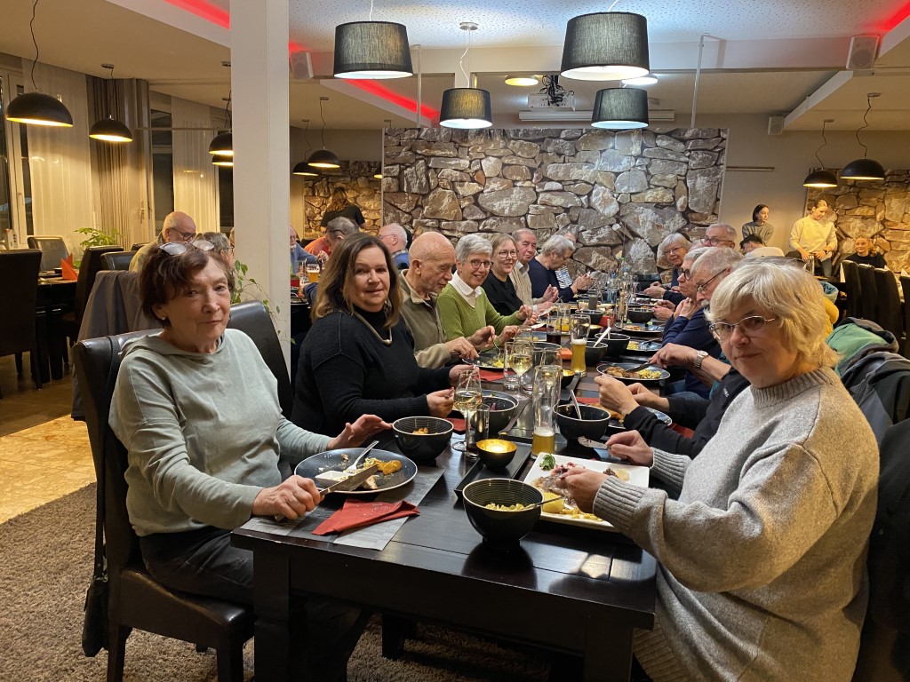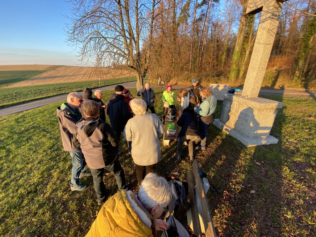 Bei herrlichstem, wenn auch kühlem Wetter trafen wir uns vergangenen Freitag pünktlich um 15 Uhr am Mondspritzerbrunnen in Wössingen zu unserem alljährlichen Jahresabschluss. Beschwingt wanderten wir zum Hasensprung, wo eine kleine Pause eingelegt wurde und wir von einem Geburtstagskind aus der Gruppe mit leckeren Keksen und selbstgemachtem Eierlikör verwöhnt wurden.