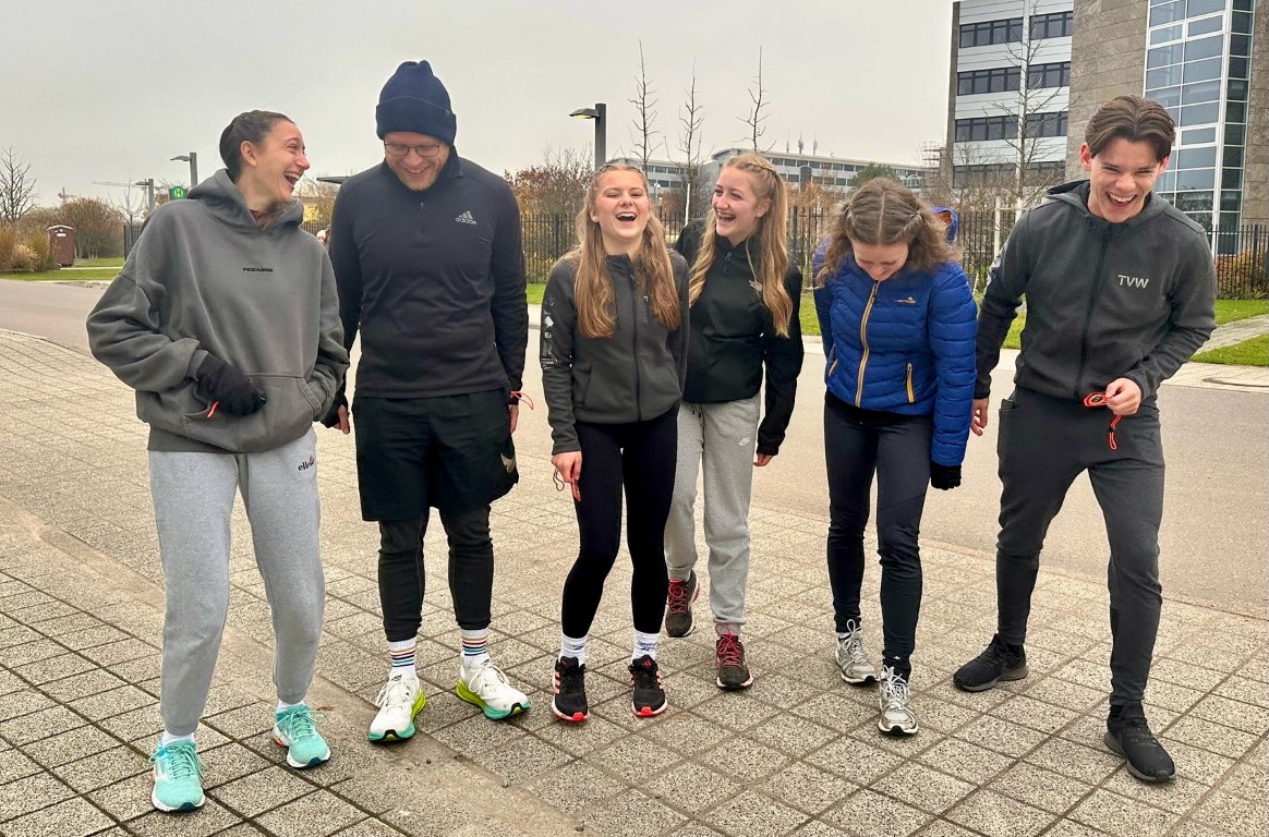 Vor dem Start zum Orientierungslauf: Es war kalt (4°C) und es war früh. Aber alle hatten etwas zu lachen. Team TVW!