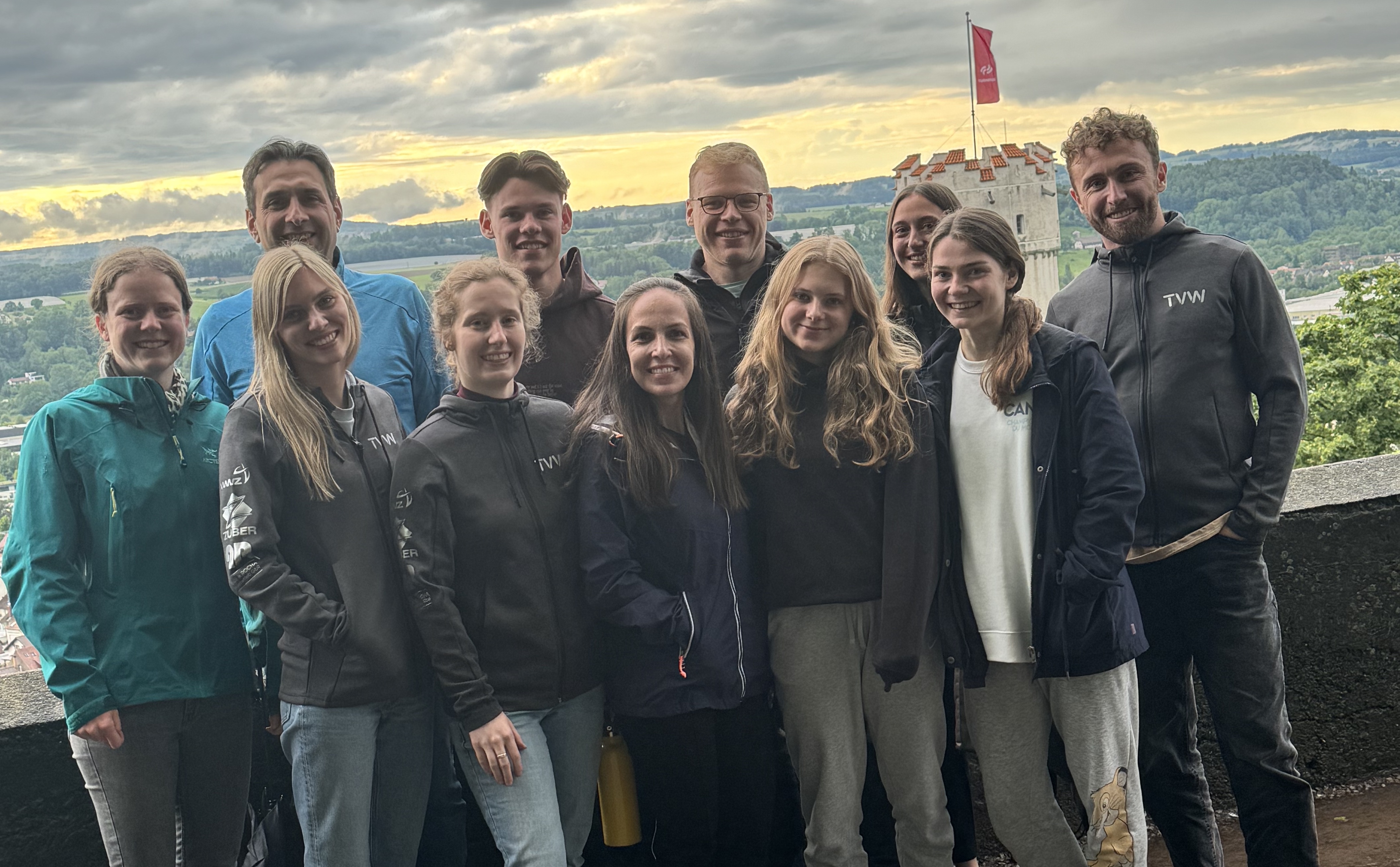 Am Donnerstag, den 30.05. machten wir – die ältesten WettkampfturnerInnen des TV Wössingen - uns auf den Weg zum Landesturnfest nach Ravensburg, um beim Baden-Württembergischen Landesentscheid im Turnerjugend Gruppenwettstreit anzutreten. Das gesamte Schussental war bereit für eine Großveranstaltung mit über Zehntausend Sportbegeisterten. Schon auf dem Weg von der Bushaltestelle zur Jugendherberge in der Veitsburg auf dem Ravensburger Hausberg bekamen wir einen Vorgeschmack auf das, was uns wettertechnisch für das restliche Wochenende erwarten würde: Dauerregen.