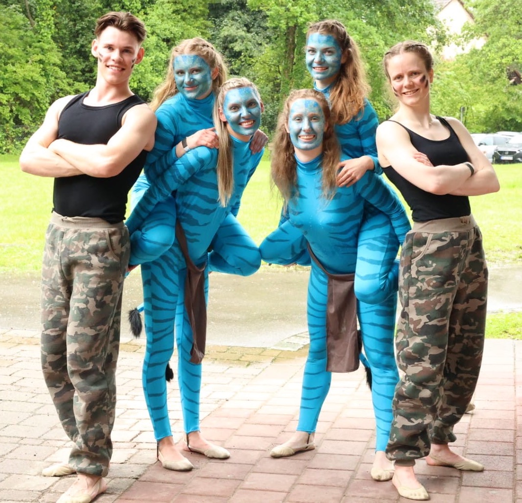Weiter ging es im Eiltempo zurück in die Sporthalle. Unsere Turnübung belohnten die Kampfrichter mit 9,25 von 10 möglichen Punkten – Jubel brach in der Wössinger Ecke auf der Tribüne aus. Als letzte Disziplin stand das Tanzen auf dem Programm. Nachdem alle Gesichter aufwändig geschminkt waren, präsentierten wir unseren neu einstudierten Tanz und entführten das Publikum als Avatare und Soldaten nach Pandora. Mit 9,45 Punkten auf dem Wertungsbogen waren wir mehr als zufrieden. Ein großes Dankeschön geht an Maike, die unseren Helferdienst in der Halle absolvierte, während wir von einer Disziplin zur nächsten unterwegs waren. Am Ende erreichten wir mit einer der besten Bodenübungen und einem der besten Tänze des Landes zusammen mit einer ausbaufähigen Wurfleistung einen tollen achten Platz.